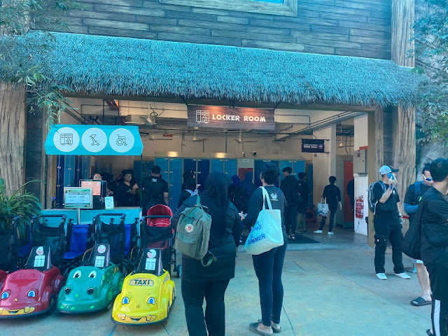 Kami sewa loker kat sini. Tak pakai kunci, hanya nombor telefon. Pembayaran kat sini semua cashless. Beli makanan, sewa pelampung dan lain-lain semua boleh QR Code / kad. Lagi senang kita install aplikasi GL Play, boleh beli tiket dan pre-book makanan. Gambar digital juga percuma unlimited. Register & download je nanti. Kene rajin approach jurugambar diorang.